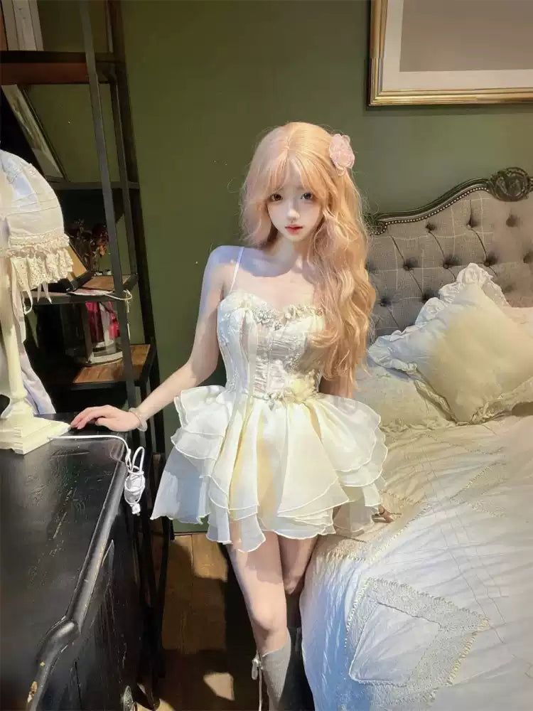 เดรสสายเดี่ยวคอร์เซ็ต พองฟู สไตล์คุณหนูหรูหรา