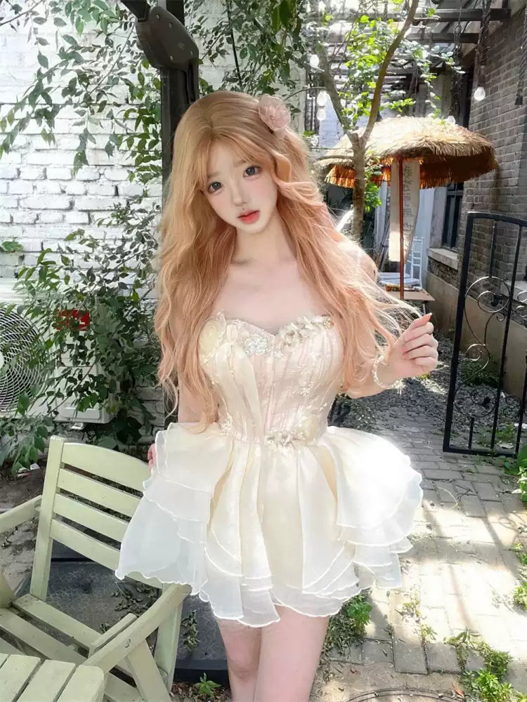 เดรสสายเดี่ยวคอร์เซ็ต พองฟู สไตล์คุณหนู งานละเอียด