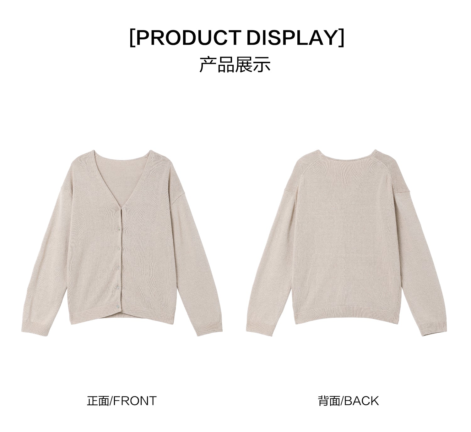 เสื้อคาร์ดิแกนไหมพรมผ้าลินิน คอวี ทรงหลวม สไตล์ Clean Fit สำหรับทำงาน