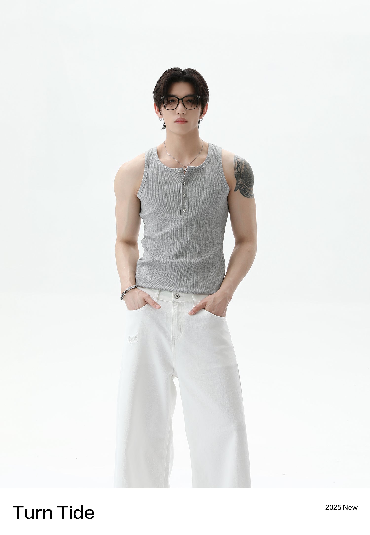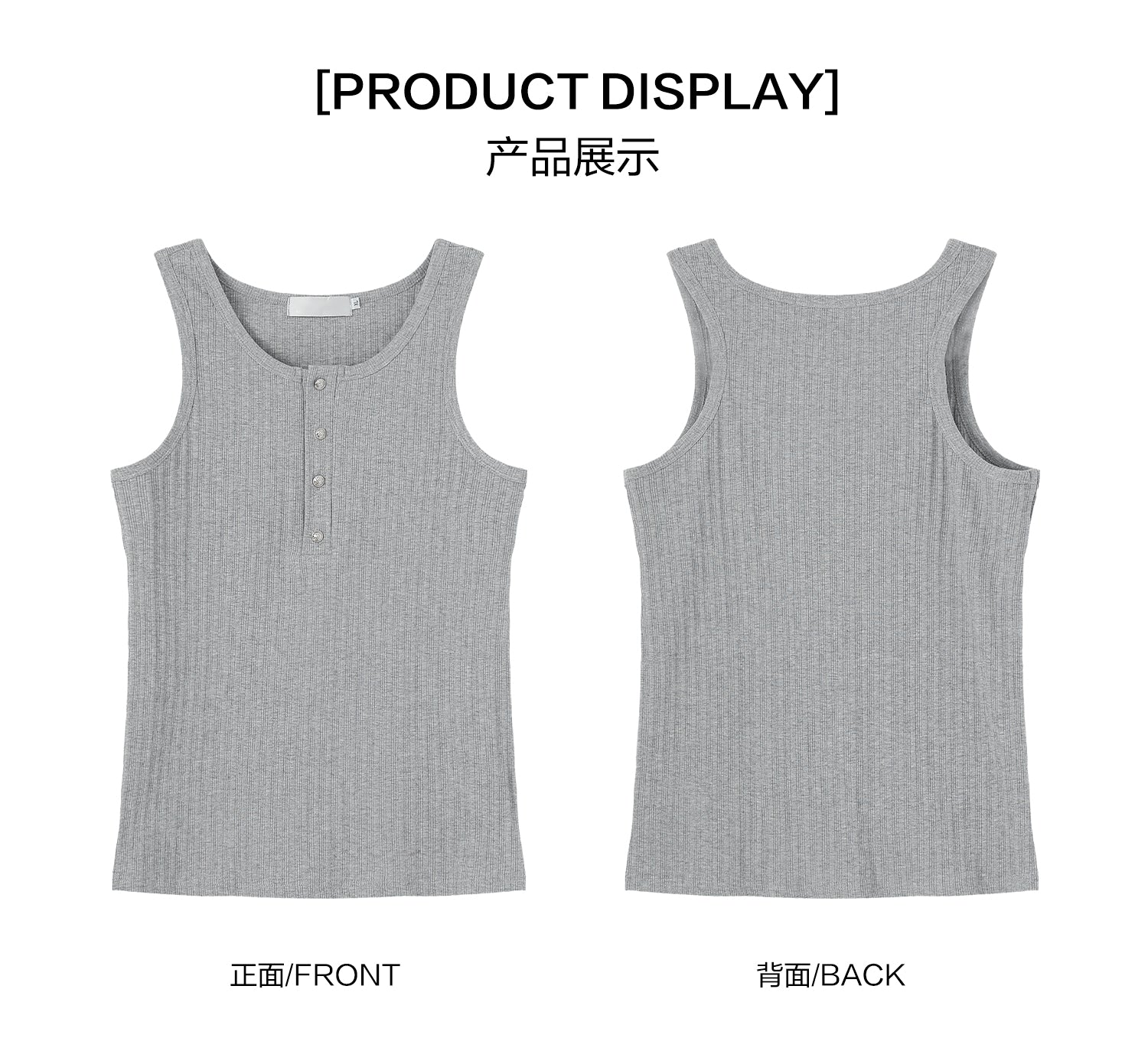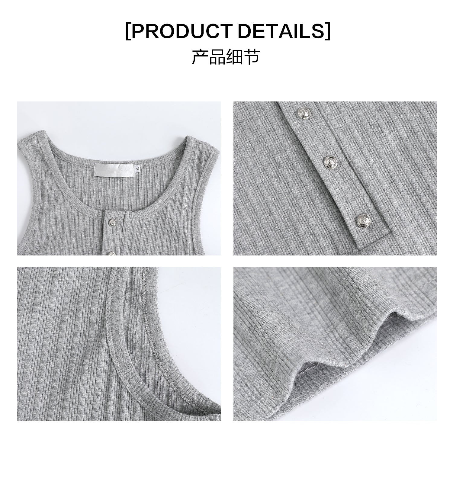 เสื้อแขนกุดคอกลมสีพื้น ทรงเข้ารูป ดีไซน์กระดุม ใส่ง่ายสำหรับฤดูร้อน